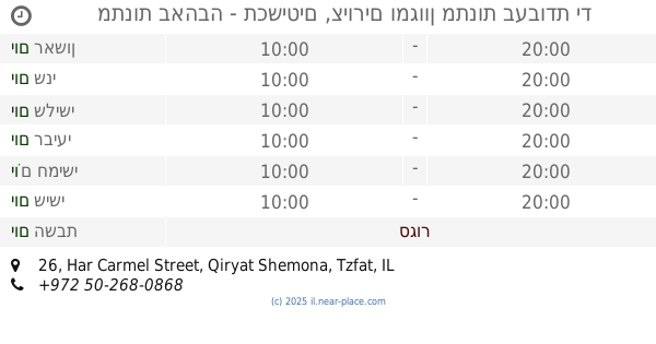 ืืืืจ ืชืขืฉืื ืฆืคืื ื, ืงืจืืช ืฉืืื ื, 1101502, ะะทัะฐะธะปั