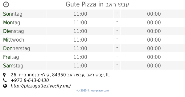 ::פיצה מאוד טעימה,וגם לחם שום טעים. יש:פיצה טבעונית,לחם שום טבעוני,פיצה פלאפל,וגם פיצות רגילות זיתים,תירס,פטריות,פפרוני,אנשובי,טונה ועגבניות.ויש כמובן קינוחים טעימים כגון:פונדק שוקולד וגלידות מאוד טעימות.