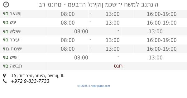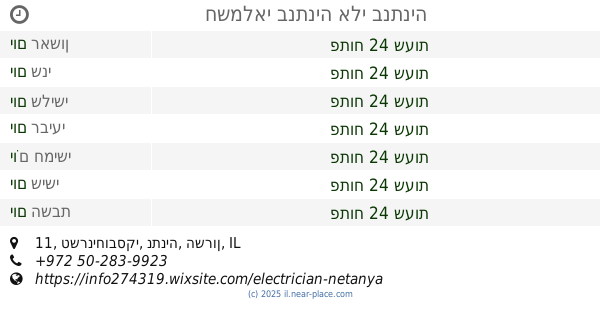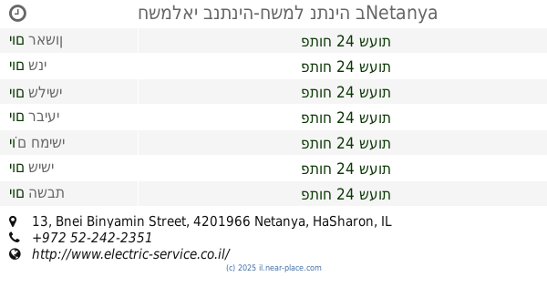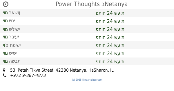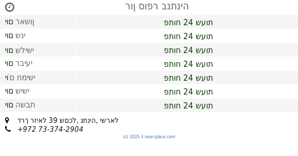 | יוֹם חמישי | פתוח 24 שעות | |||||