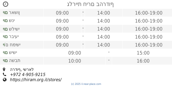 🕗 שעות פתיחה