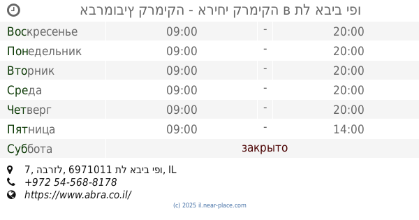 контакты телефон: +972 3-936-3398