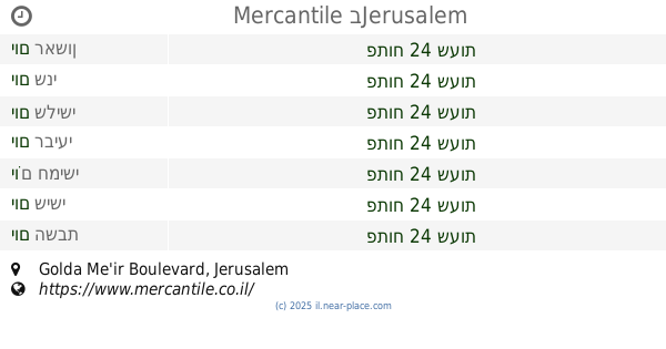 | יוֹם חמישי | פתוח 24 שעות | |||||