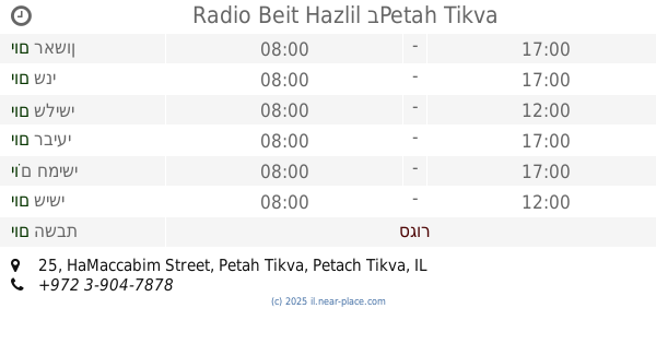 🕗 שעות פתיחה