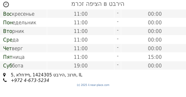 контакты телефон: +972 4-672-3355