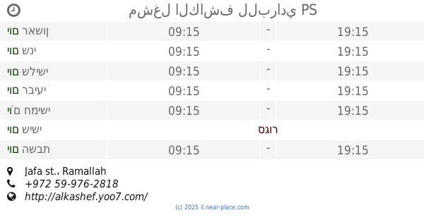 ืื ืฉื ืงืฉืจ ืืืคืื: +970 2 297 4064