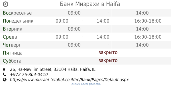 ::Among all the Haifa banks, I chose this bank precisely because of excellent service, personal and courteous human response. Basically pleasant and professional team, despite having one bank on behalf of older and rejects .... Professional, making mistakes, underestimating customers, speech instead. Do not contact her. Big branch, good luck.