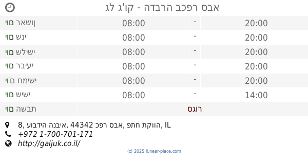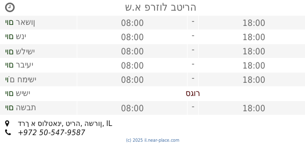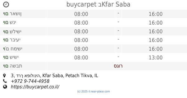| יוֹם חמישי | פתוח 24 שעות | |||||