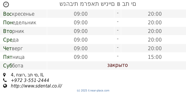 контакты телефон: +972 3-505-1856