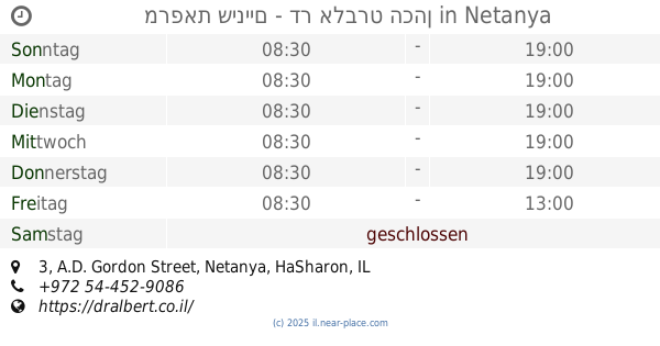 1, Eliyahu Golomb Street, Netanya, HaSharon, IL Israelkontakte telefon: +972