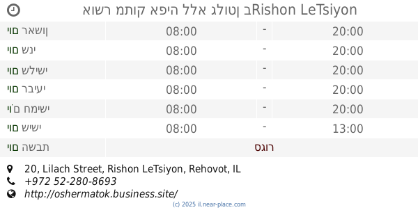 🕗 שעות פתיחה