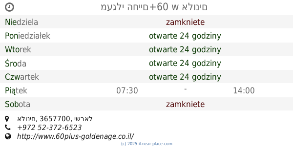 | Poniedziałek | otwarte 24 godziny | |||||