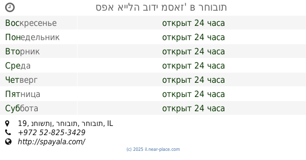 | Четверг | открыт 24 часа | |||||