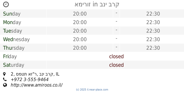 | Saturday | closed | |||||