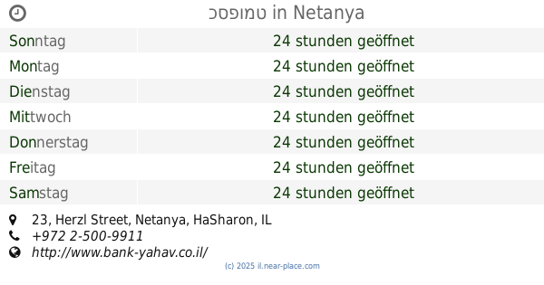 | Samstag | 24 stunden geöffnet | |||||