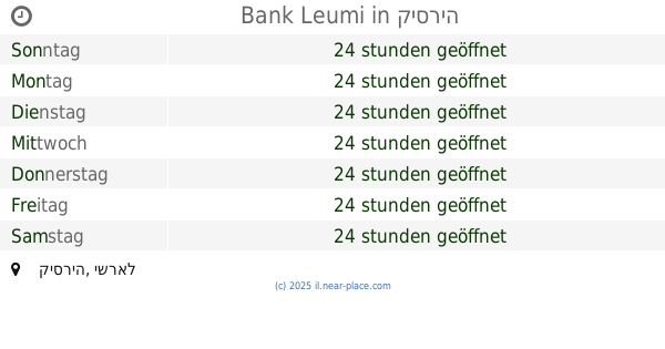 | Donnerstag | 24 stunden geöffnet | |||||