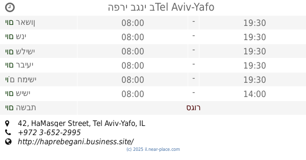 | יוֹם חמישי | פתוח 24 שעות | |||||
