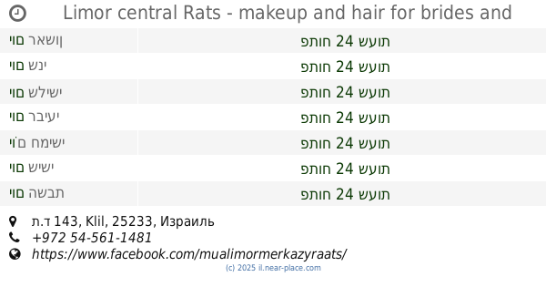 | יוֹם חמישי | פתוח 24 שעות | |||||