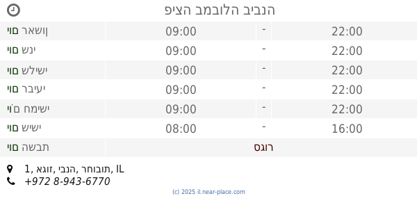 ืื ืฉื ืงืฉืจ ืืืคืื: +972 8-942-0186