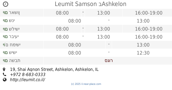 🕗 שעות פתיחה