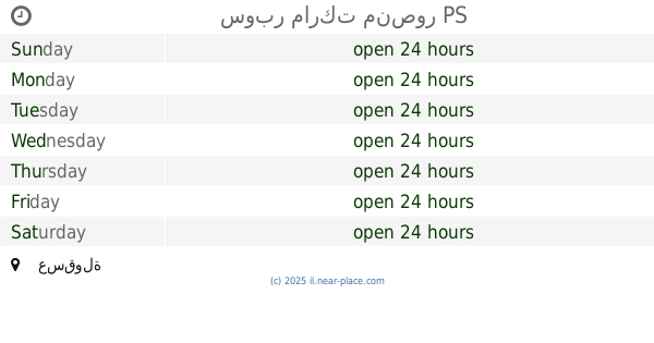 | Sunday | open 24 hours | |||||