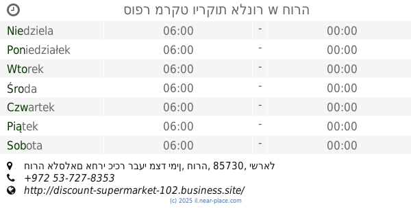 | Niedziela | otwarte 24 godziny | |||||