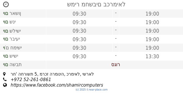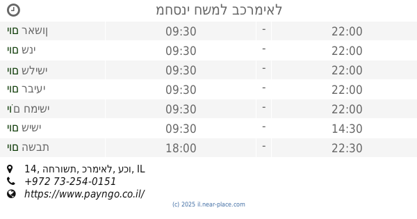 🕗 שעות פתיחה