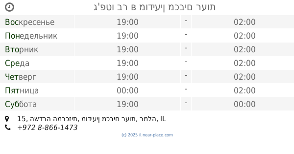 контакты телефон: +972 8-970-2119