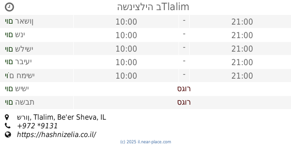 🕗 שעות פתיחה