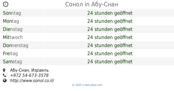 | Sonntag | 24 stunden geöffnet | |||||