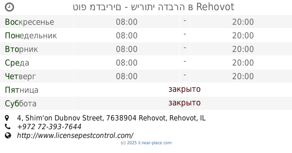контакты телефон: +972 3-550-9211