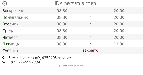 המלאכה 45, כניסה 4, קומה 3, ת.ד: 111. סניף: 630., Netanya