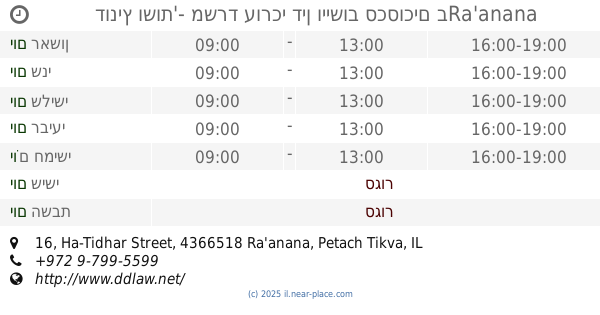 🕗 שעות פתיחה