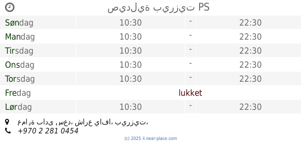 | Lørdag | lukket | |||||