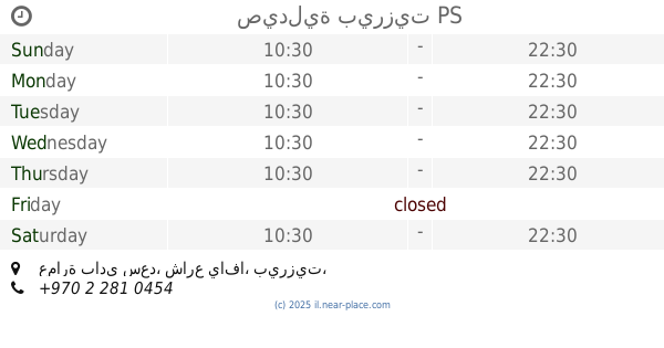 | Saturday | closed | |||||