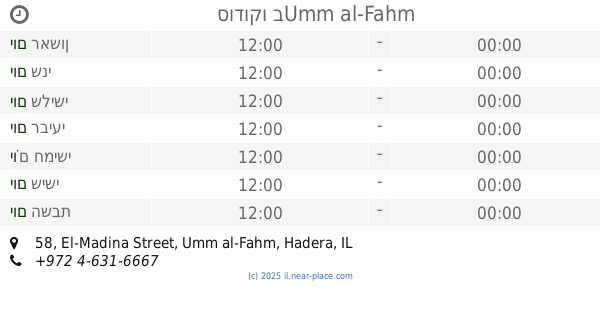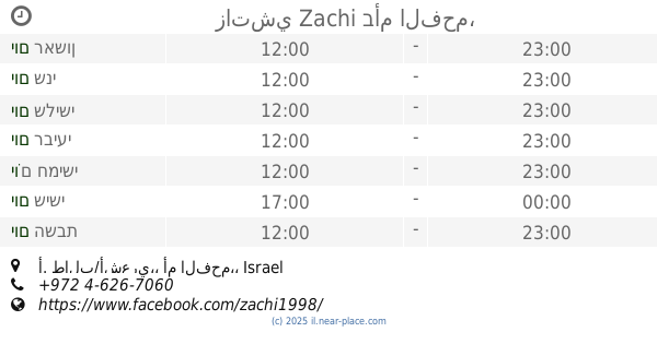| יוֹם חמישי | פתוח 24 שעות | |||||
