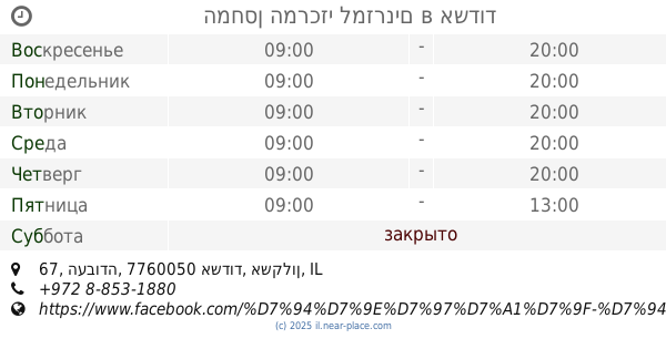 контакты телефон: +972 8-853-1138