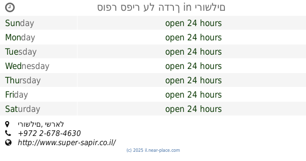 | Saturday | open 24 hours | |||||
