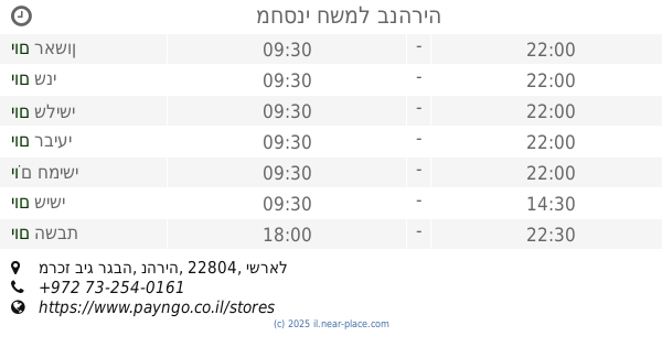 🕗 שעות פתיחה