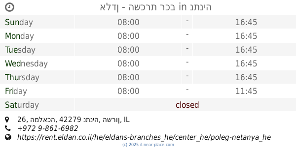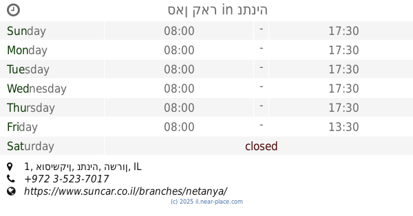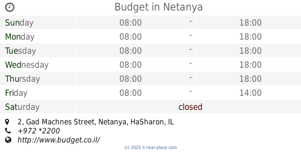 ::- It took an hour to take a car, even though i was the first customer in the morning. Deposit is quite high (4000nis). They working 8-5, no Saturday (it becomes a problem with convenient time for car return). + Local manager was friendly. Deposit was back in a week (after note). Everything else is ok.