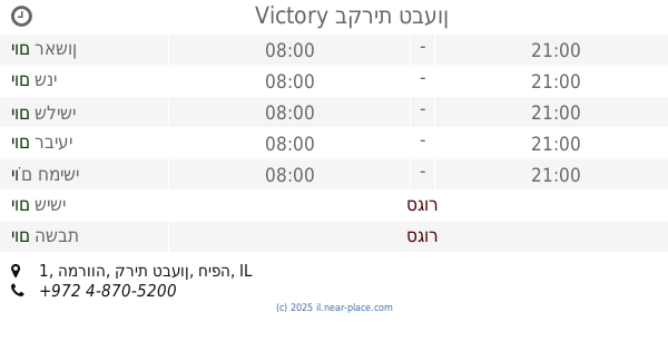 🕗 שעות פתיחה