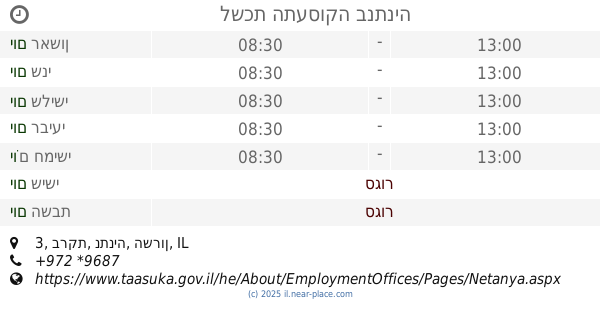 🕗 שעות פתיחה