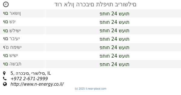 | יום השבת | פתוח 24 שעות | |||||