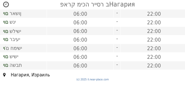 | יוֹם חמישי | פתוח 24 שעות | |||||