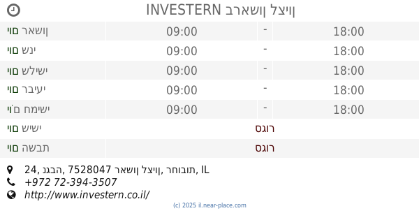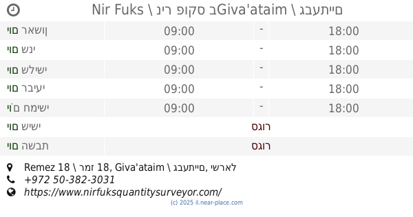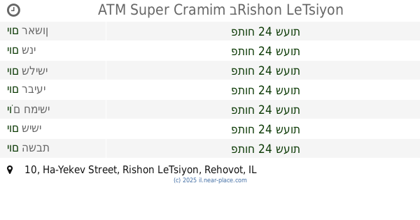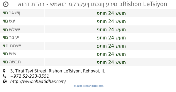 | יוֹם חמישי | פתוח 24 שעות | |||||