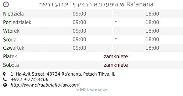 większa mapa i wskazówkiLatitude: 32.1740001, Longitude: 34.844556