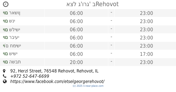 🕗 שעות פתיחה