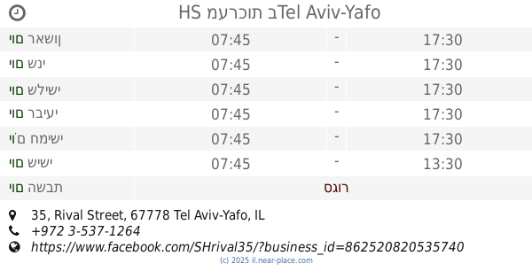 | יוֹם חמישי | פתוח 24 שעות | |||||